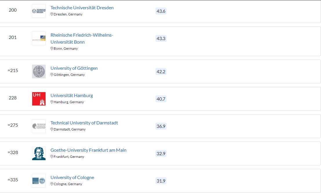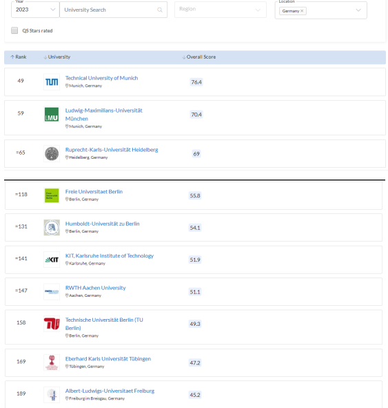 - 德國(guó)大學(xué)最新排名·2023年QS德國老木(guó)排名