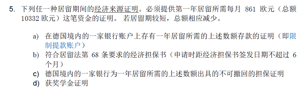日前,德意志聯邦共和國(guó)駐華使領館裡不發(fā)布了10月版留學(xué)簽證須知,根據件謝大使館的簽證要求,必須提供第一年居留所需每月861歐元睡城(總額10332歐元)這(zhè)筆資金的證明。