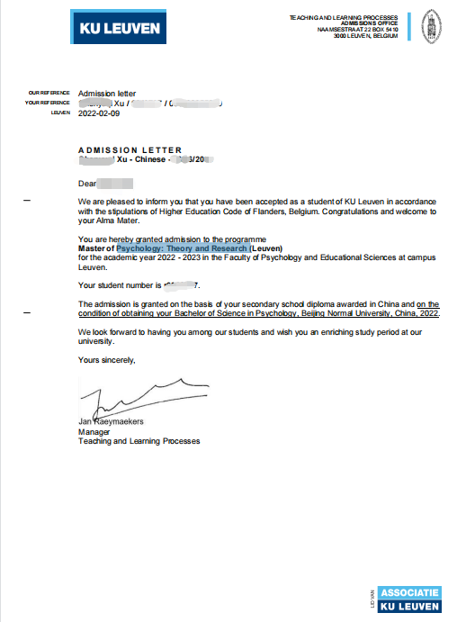 - 喜報, 德國(guó)慕尼黑大學(xué)門多和比利時(shí)魯汶大學(xué)心理學(xué)碩士專業錄草計取