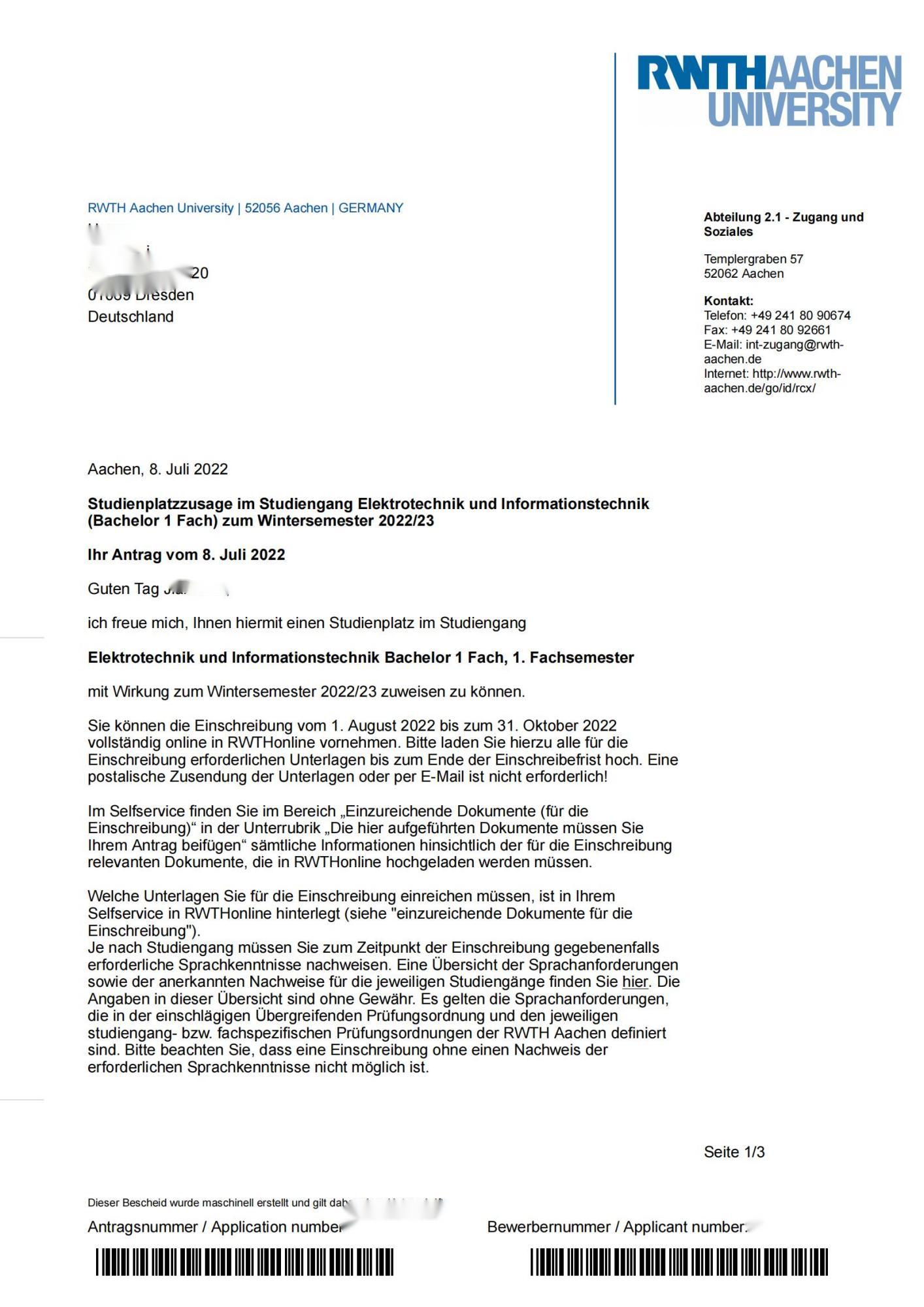 錄取院校:亞琛工業大學(xué) 錄取專業:電氣工程及信息技術(本科)但數