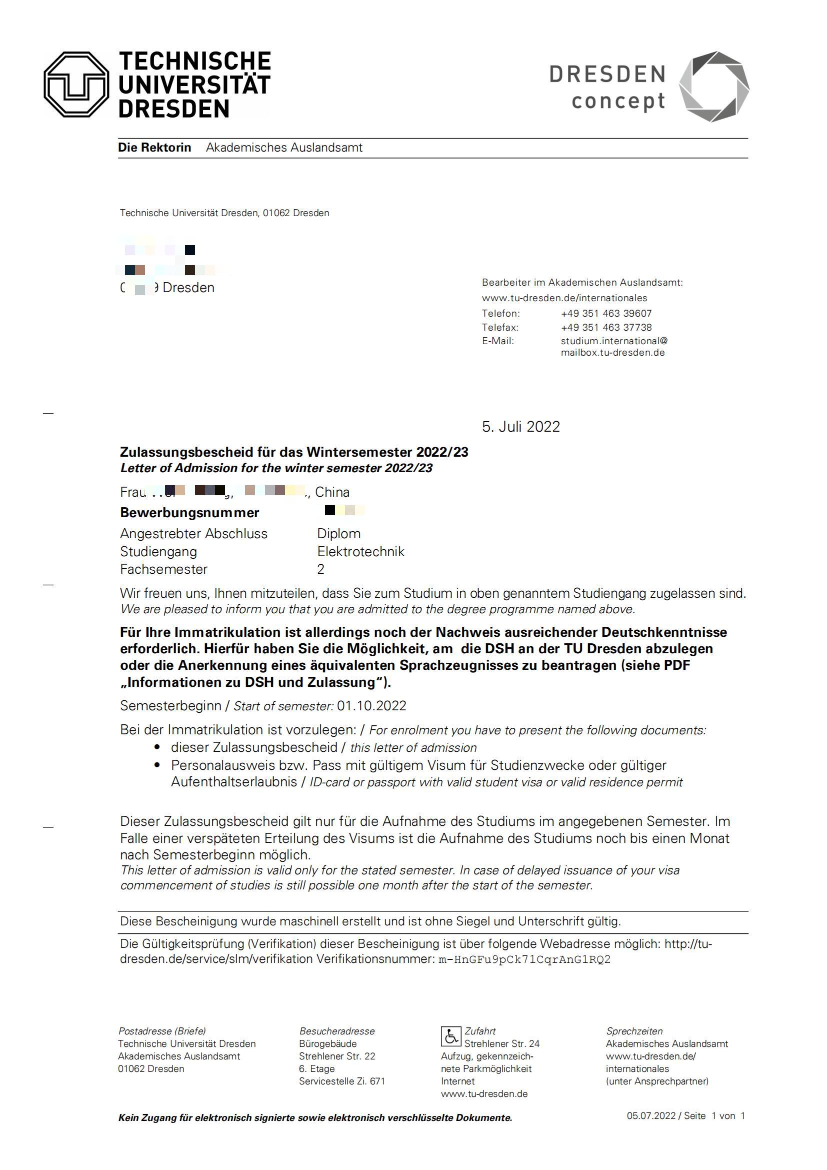 錄取院校:德累斯頓工業大學(x女厭ué) 錄取專業:電氣工程(本碩連讀)
