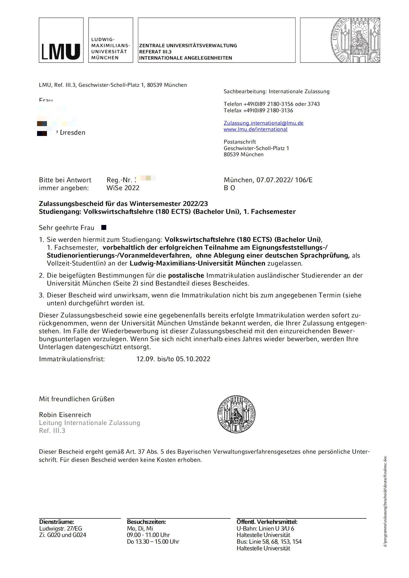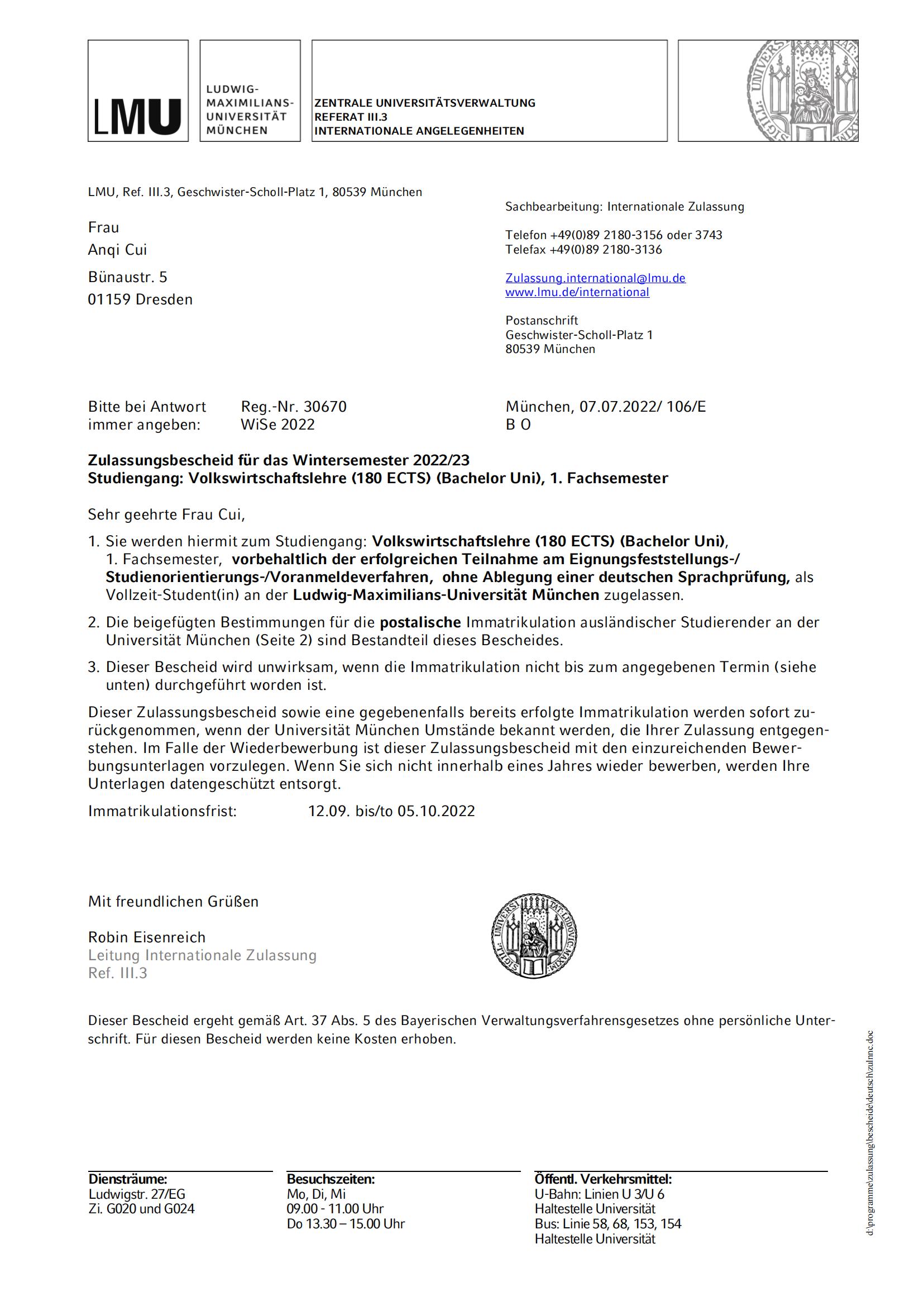 錄取院校:慕尼黑大學(xué)錄取專她白業:國(guó)民經(jīng)濟學(xué)(本科)了路